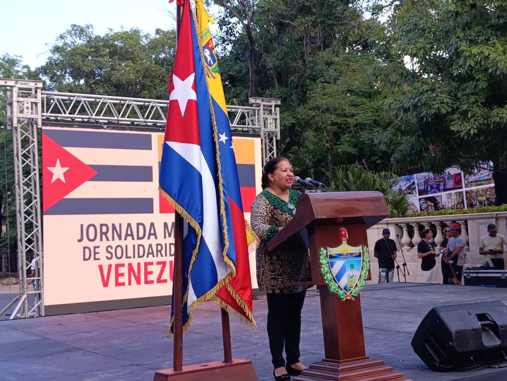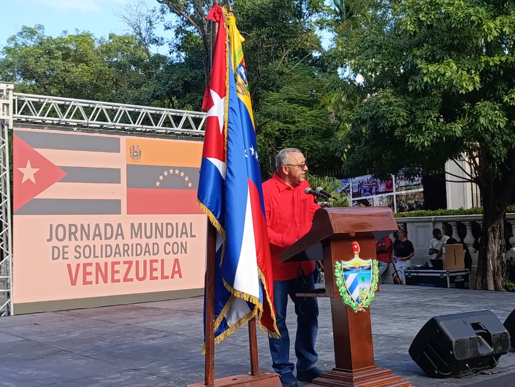Amarillo, azul y rojo. Banderas, carteles, consignas. Los habaneros se unieron este sábado a la Jornada Mundial de Solidaridad a la República Bolivariana de Venezuela. La demostración, que contó con la presencia del canciller Bruno Rodríguez Parrilla y de Teresa Amarelle Boué, secretaria general de la Federación de Mujeres Cubanas, ratificó el histórico y firme respaldo de la Mayor de las Antillas a la Revolución Bolivariana, a su pueblo y al presidente constitucional Nicolás Maduro Moros. Este apoyo, forjado en décadas de cooperación y principios compartidos, se reafirmó ante las crecientes amenazas y el despliegue militar en el Caribe por parte de Estados Unidos.