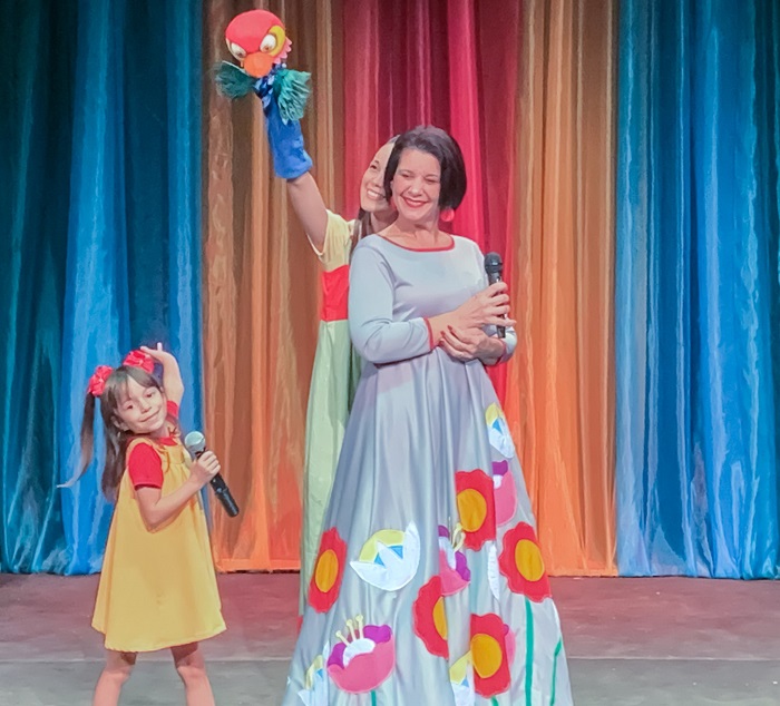 La cantante Olga Blanco, con más de tres décadas de trayectoria, fue el centro de una velada que reunió música, teatro y danza. La acompañaron Raúl Valdés (teclados), Irina Madrazo (flauta), Dolly Díaz (oboe) y Patricia García (fagot), junto a la actriz Laura Marín, los actores Freddy Maragotto, Iván García, Raúl Álvarez, el bailarín Yadiel Durán, y los solistas y bailarines de la Compañía Musical Infantil-Juvenil Gabi y Sofi.