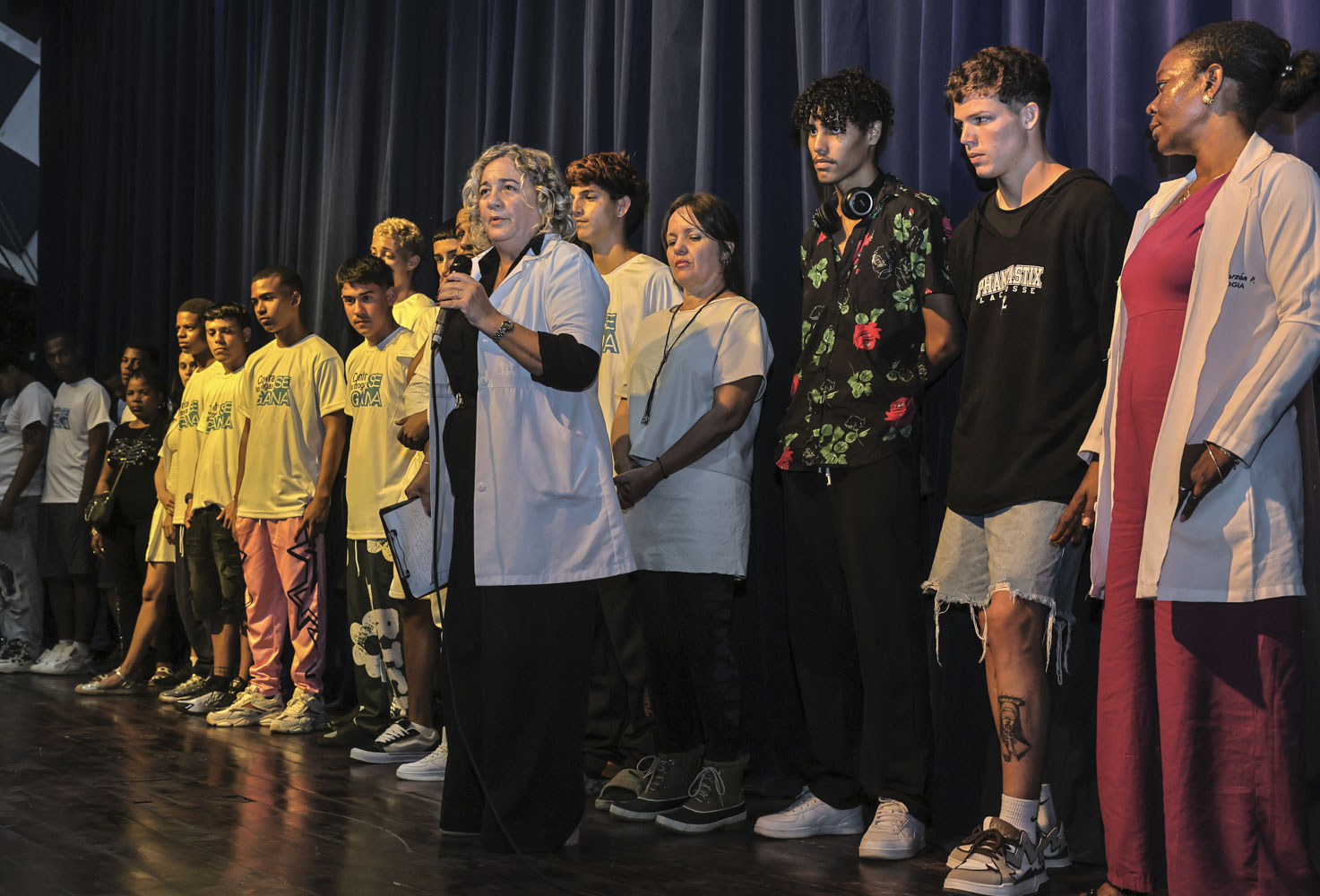 Dicho auditorio contó con espectadores muy especiales: estudiantes de cuatro preuniversitarios, cuatro escuelas primarias y de la Facultad de Ciencias Médicas Victoria Girón, así como grupos de jóvenes pertenecientes al CDA, una comunidad terapéutica que ayuda a los jóvenes en su lucha contra cualquier adicción.