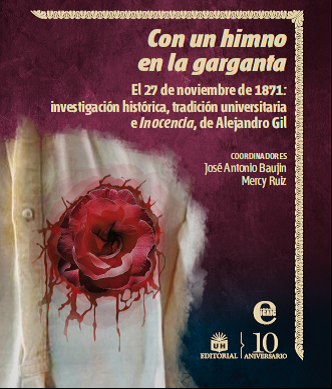Con un himno en la garganta. El 27 de noviembre de 1871: investigación histórica, tradición universitaria e Inocencia, de Alejandro Gil, comienza con una presentación de la autoría de la doctora Miriam Nicado García, rectora de la Universidad de La Habana, a la que le sigue el poema «A mis hermanos muertos el 27 de noviembre», escrito por José Martí en 1972, y el texto «El mundo se abre, el mundo se dilata. El 27 de noviembre de 1871 hoy», de José Antonio Baujín.