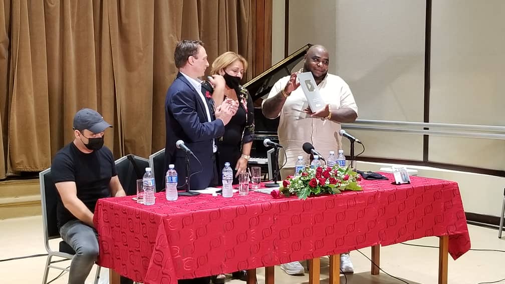 Momento emotivo para Bressling fue entregar en manos de Alexander Abreu el certificado o placa de plata que otorga YouTube a Havana D´Primera Official, por alcanzar los primeros 100 mil suscriptores; señal inequívoca de su arraigo en la famosa plataforma.