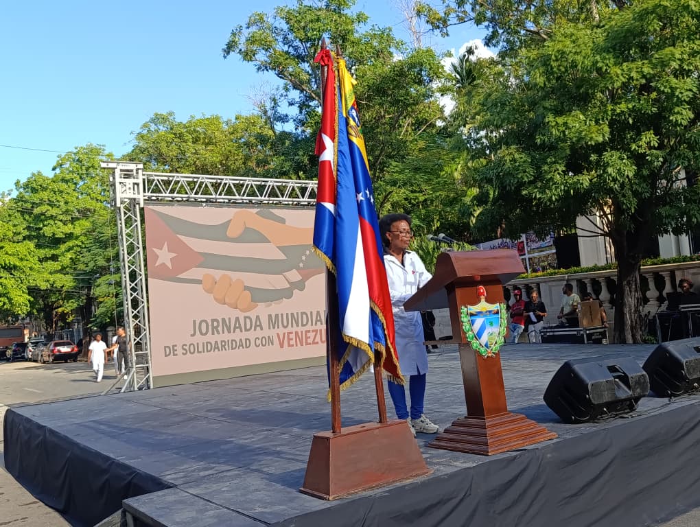 Amarillo, azul y rojo. Banderas, carteles, consignas. Los habaneros se unieron este sábado a la Jornada Mundial de Solidaridad a la República Bolivariana de Venezuela. La demostración, que contó con la presencia del canciller Bruno Rodríguez Parrilla y de Teresa Amarelle Boué, secretaria general de la Federación de Mujeres Cubanas, ratificó el histórico y firme respaldo de la Mayor de las Antillas a la Revolución Bolivariana, a su pueblo y al presidente constitucional Nicolás Maduro Moros. Este apoyo, forjado en décadas de cooperación y principios compartidos, se reafirmó ante las crecientes amenazas y el despliegue militar en el Caribe por parte de Estados Unidos.