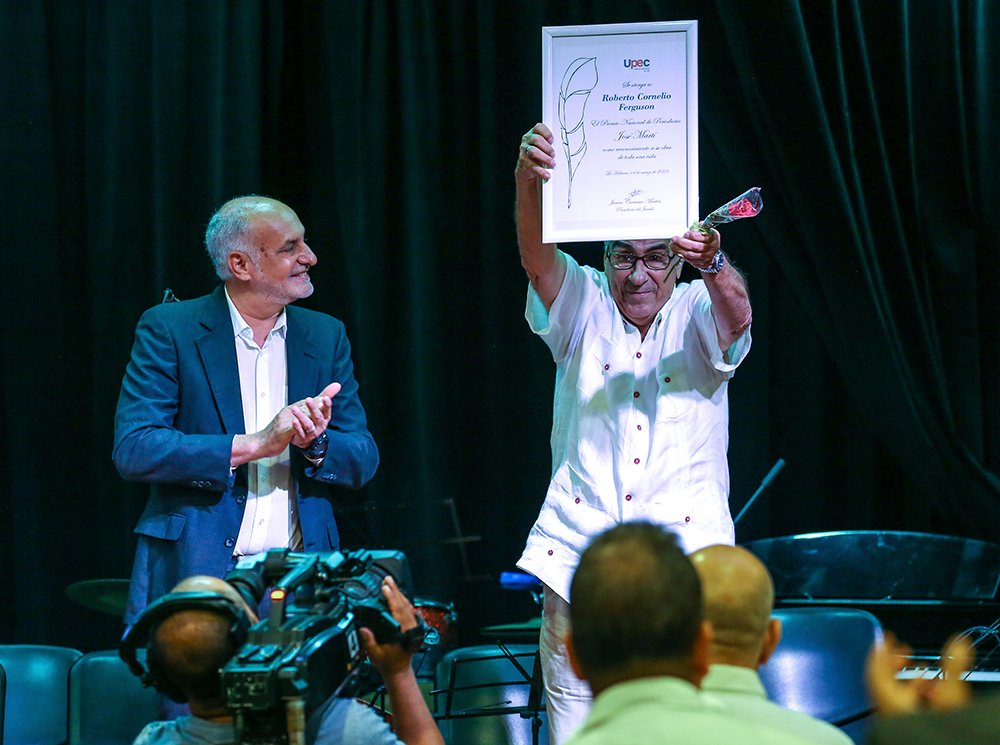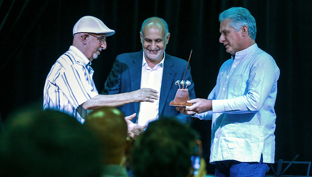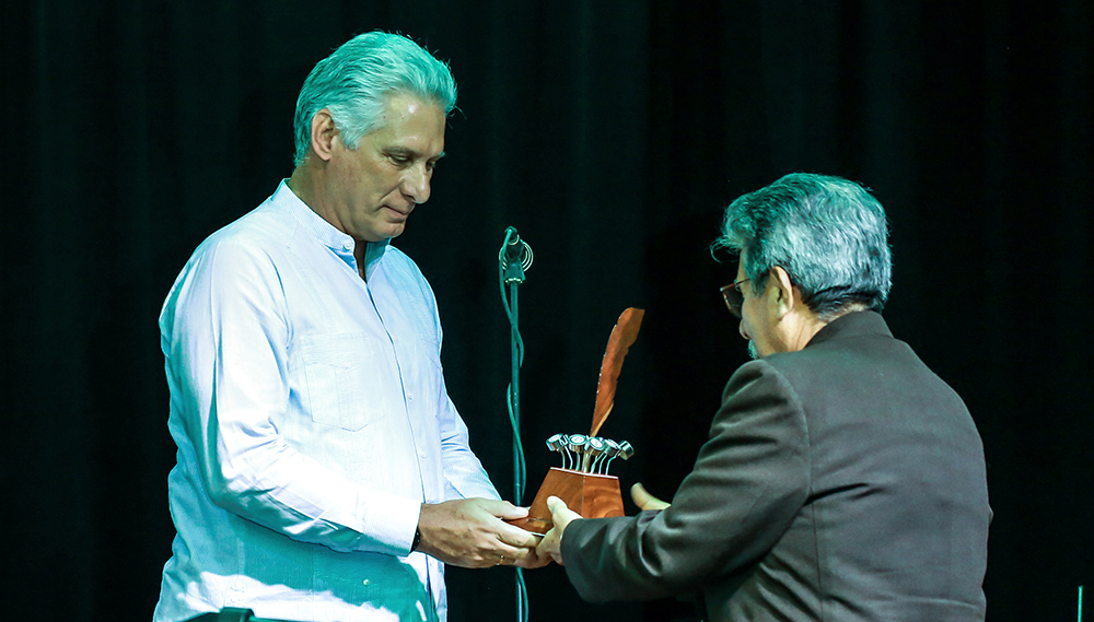 El Premio José Martí 2023 por la obra de la vida (el más alto reconocimiento que concede la UPEC a sus afiliados) fue entregado por Díaz-Canel y Ronquillo a Marina Menéndez, José Antonio Fulgueiras, Roberto Ferguson, Juvenal Balán Neyra y Héctor Ochoa.
